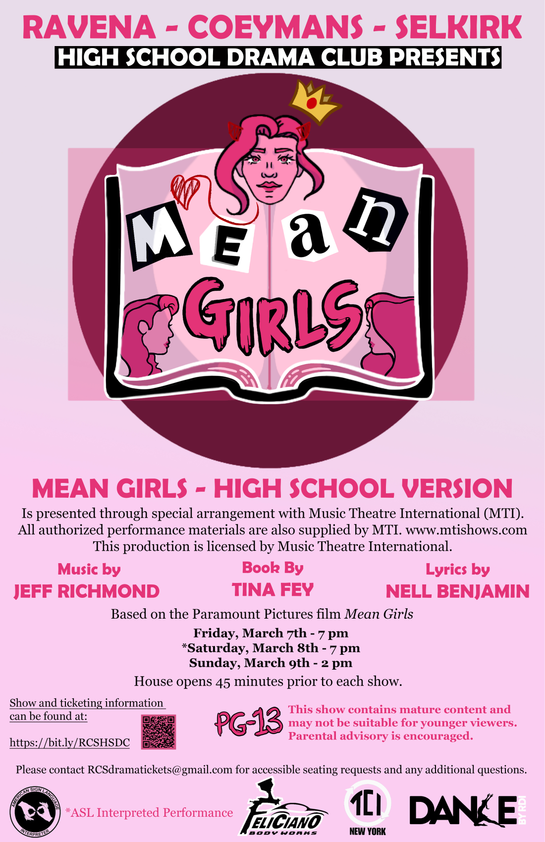 The March 8, 2025 show of Mean Girls - High School Version at 7:00 pm will be an ASL Interpreted Performance.